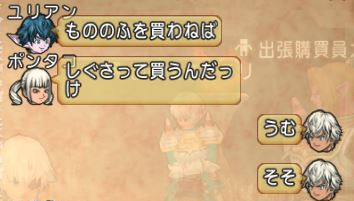 グレン城下町の購買員のところに走って行くチムメンたち。