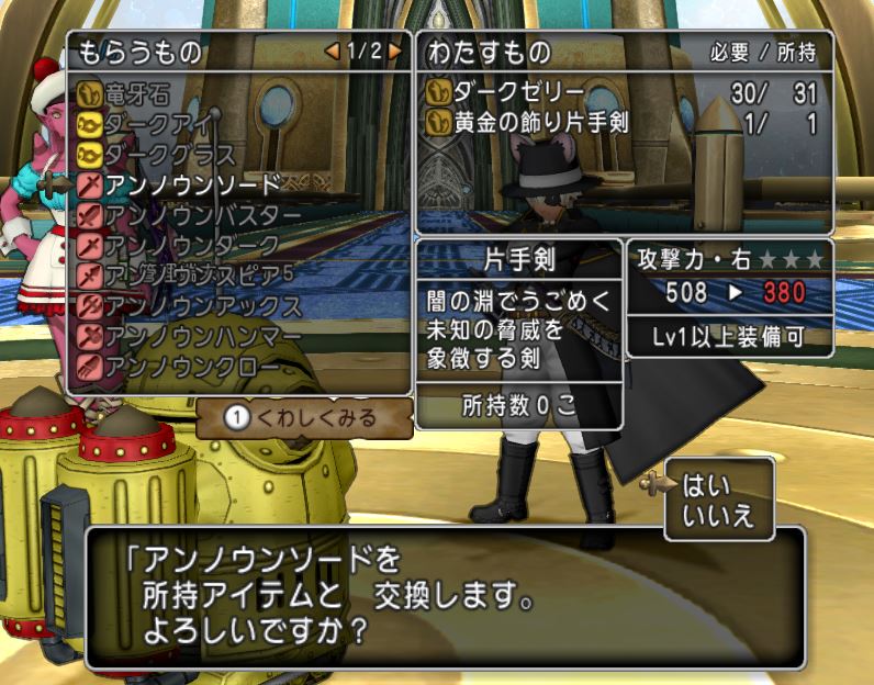 あまり悩まず、左手用の片手剣にしました。