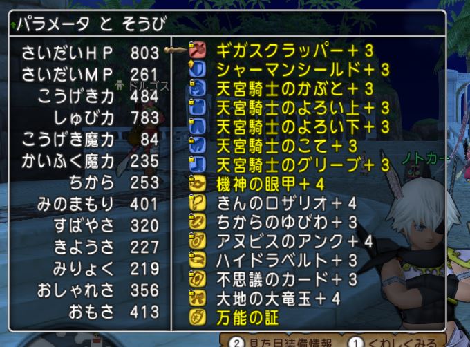 ちなみに803なのは料理(バトステ★3)が残ってるからです。HP800超えのパラディンで遊んでみたいものです。重さつけなくていいのは暗黒の魔人くらいかな?