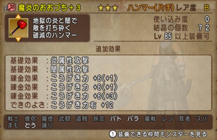 でも天使の鉄槌にドレアするのはちょっと抵抗があったので(天使は軽いのでパラで装備する機会がなさそうなのです)、このためだけにずっとスルーしてた魔炎のおおづちを購入してしまいました。