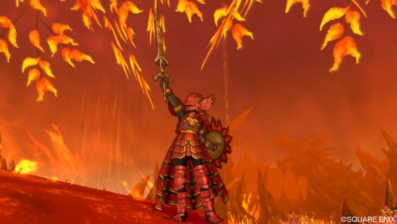 舞台が燃え盛る烈火の渓谷で、キラクリも赤いので、合わせて自分のドレアも赤くしてました。(レグナードも烈火の渓谷だから、いまだに赤い)