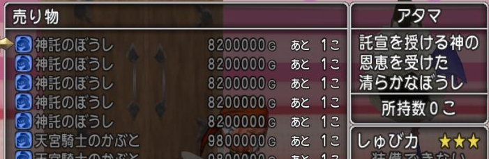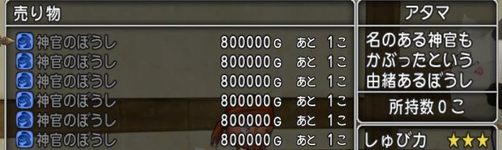 神託のぼうし 80万 → 神官のぼうしを80万で販売