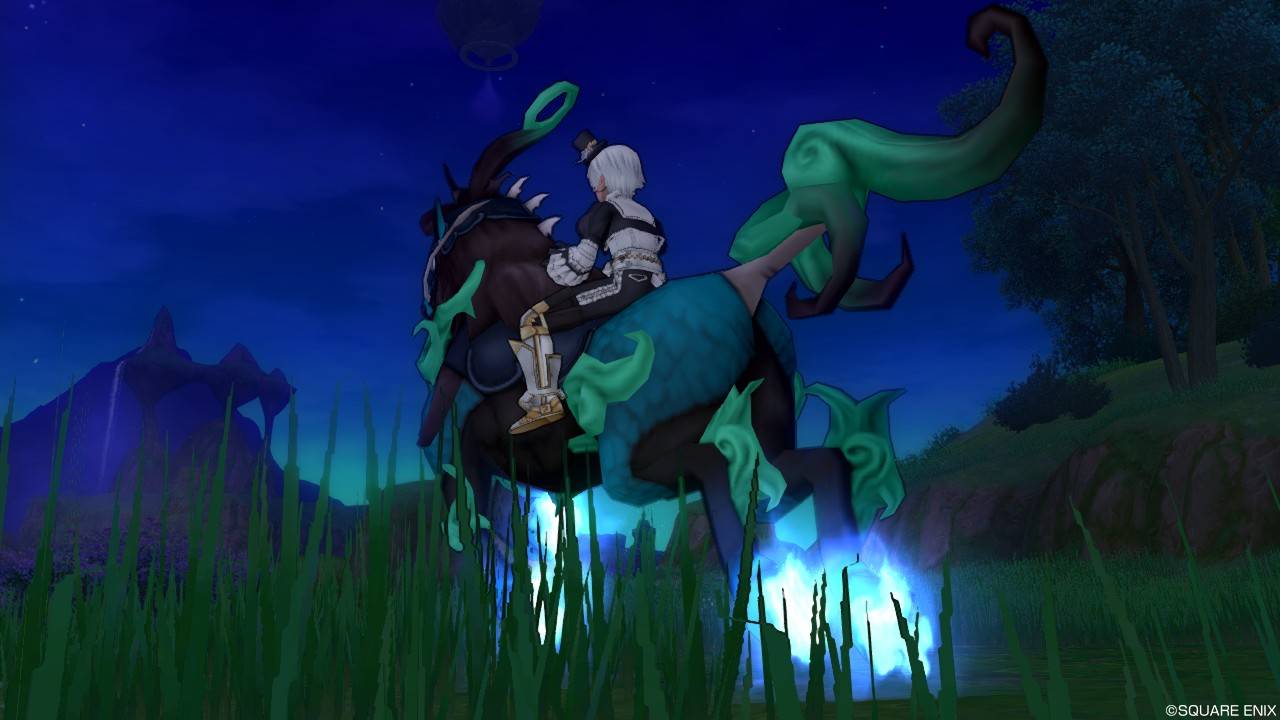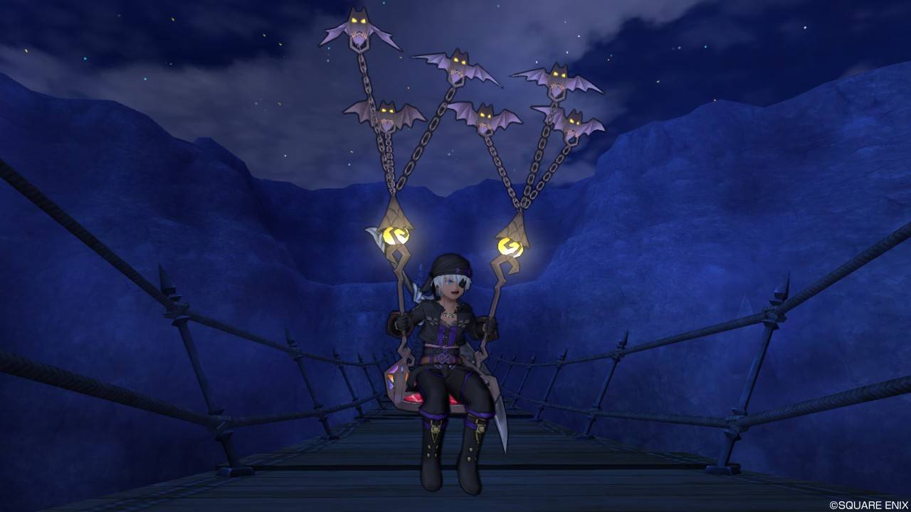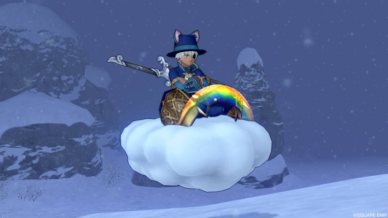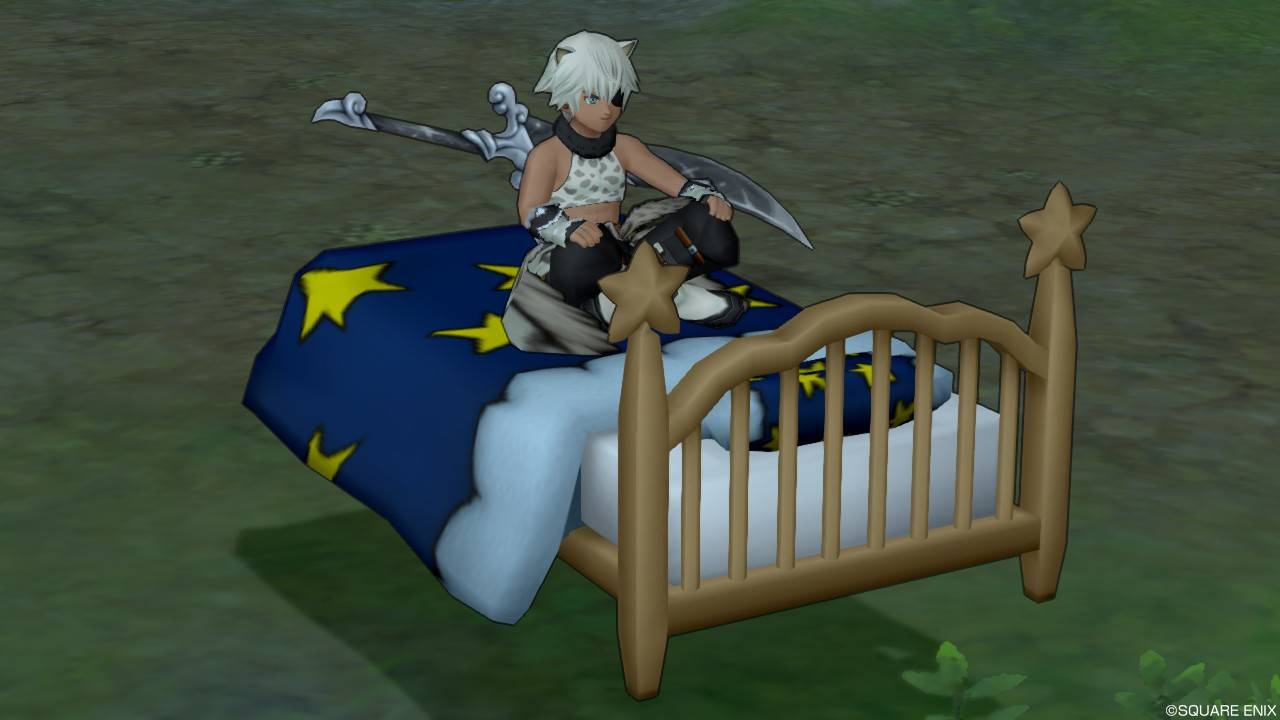これ結構気に入ってるんですが、キラマラにも普段使いにも向いていないのでフレに見せる時以外で乗った記憶がないです。でも空飛ぶベッドいいよね。空飛ぶダブルベッド実装はよ。